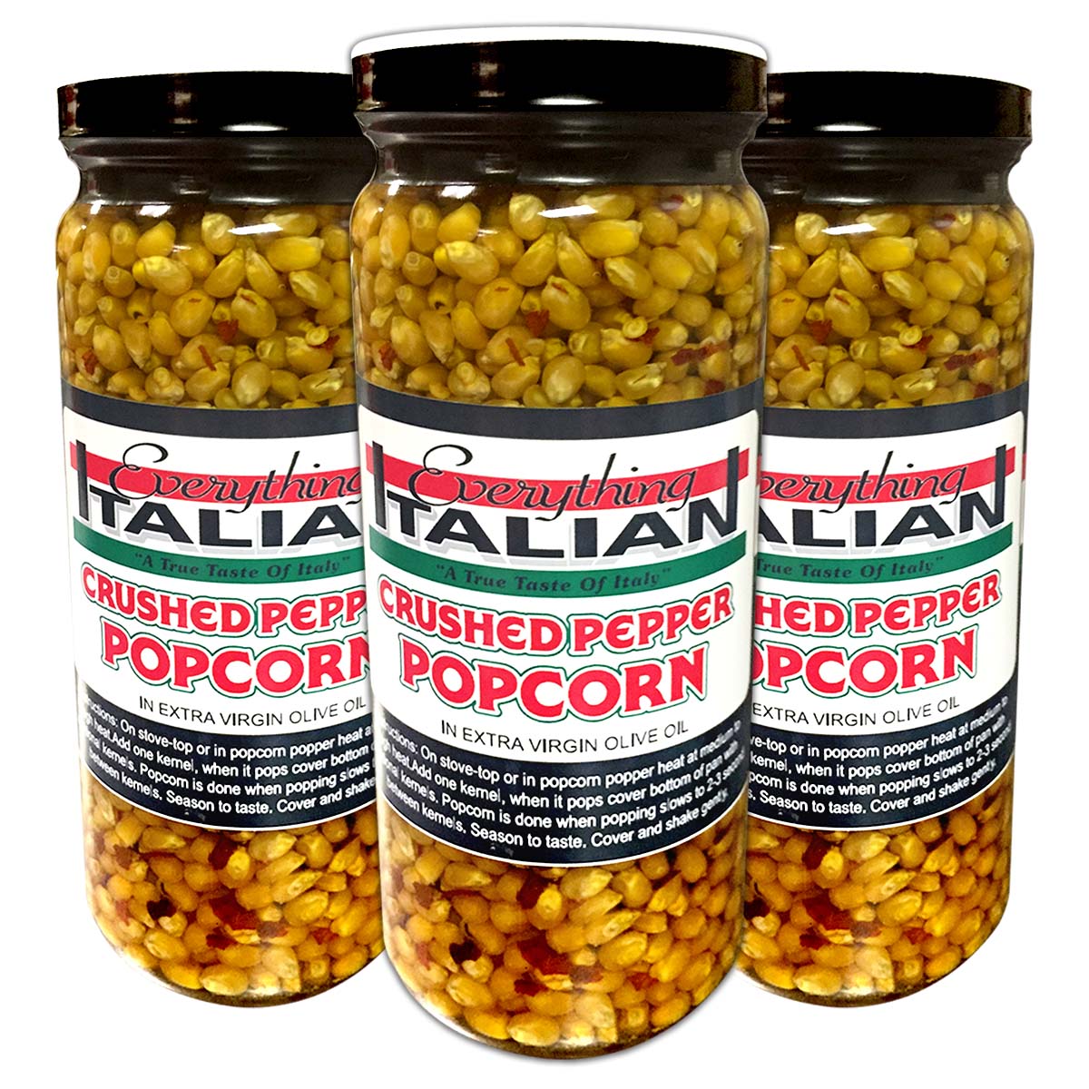 Popcorn, Extra Virgin Olive Oil, Crushed Pepper Flavoring